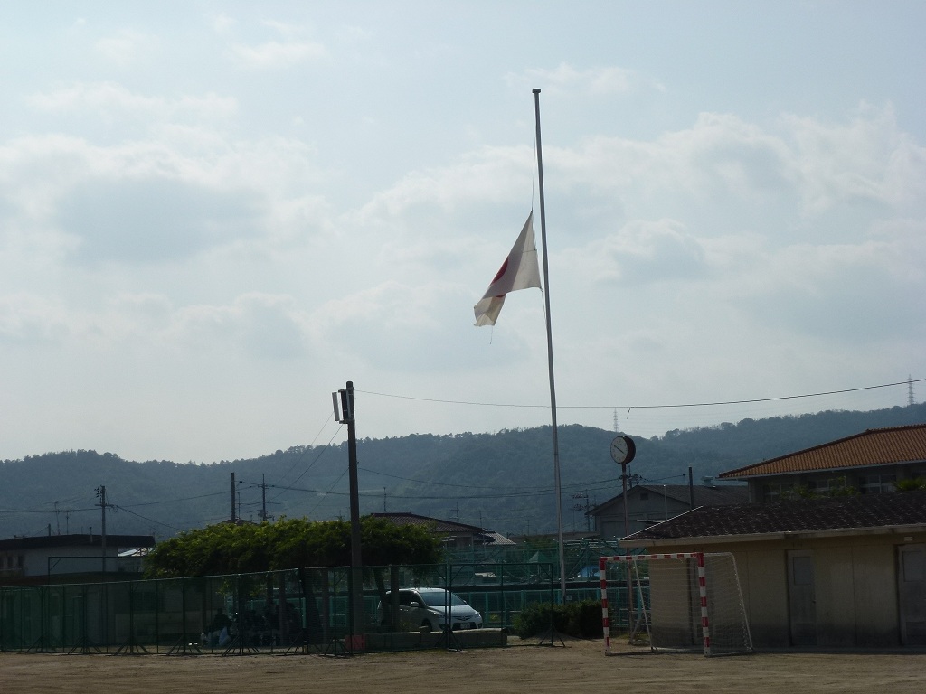 中学校、庄支所に半旗が掲げられてました