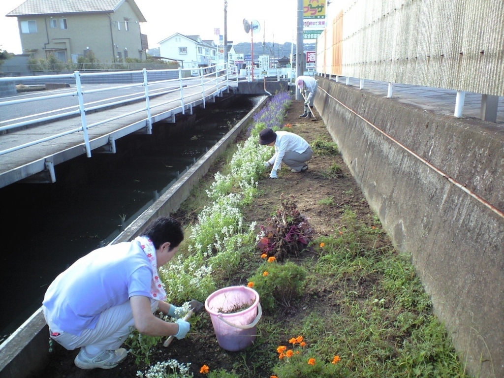 『ふれあい花壇』の手入れを行っています。