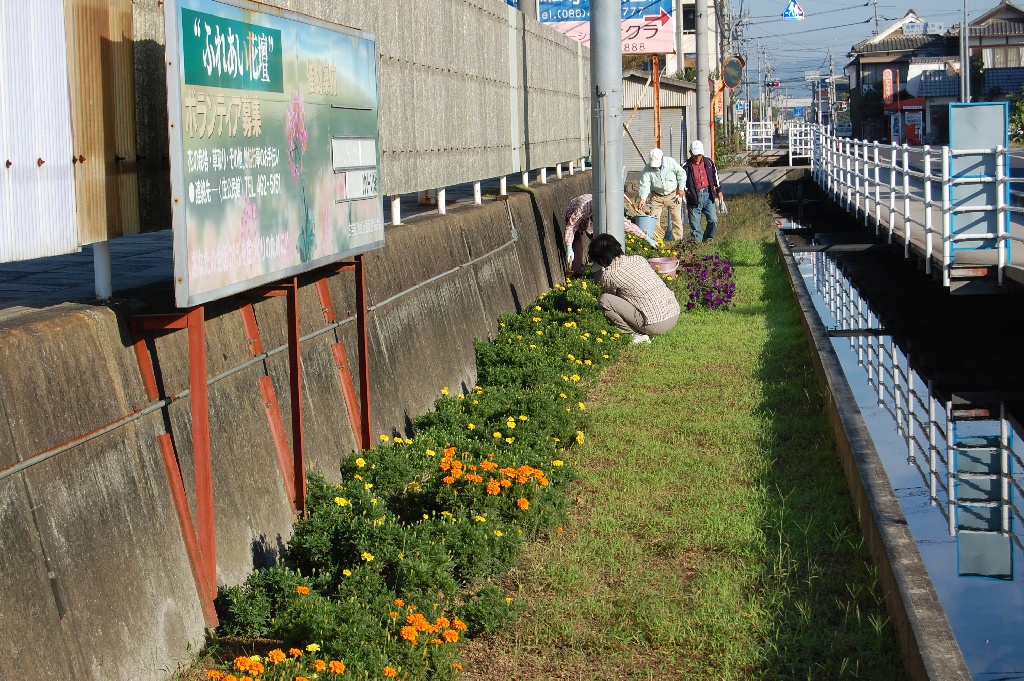 『ふれあい花壇』の手入れを行っています。