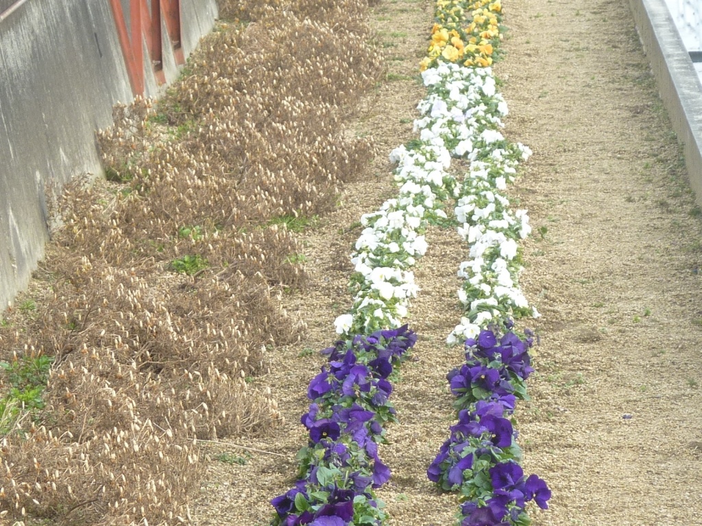 その前のパンジーは綺麗な花を咲かせています