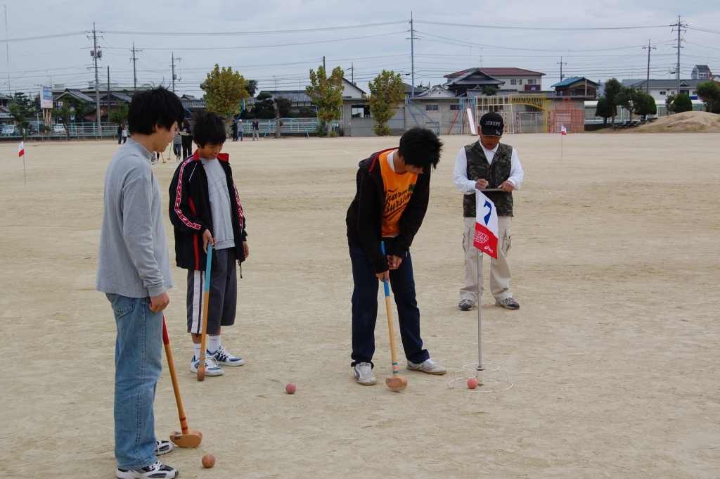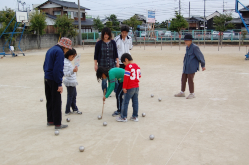 グランドゴルフ(48人)、ペタンク(24人)…小学校運動場
