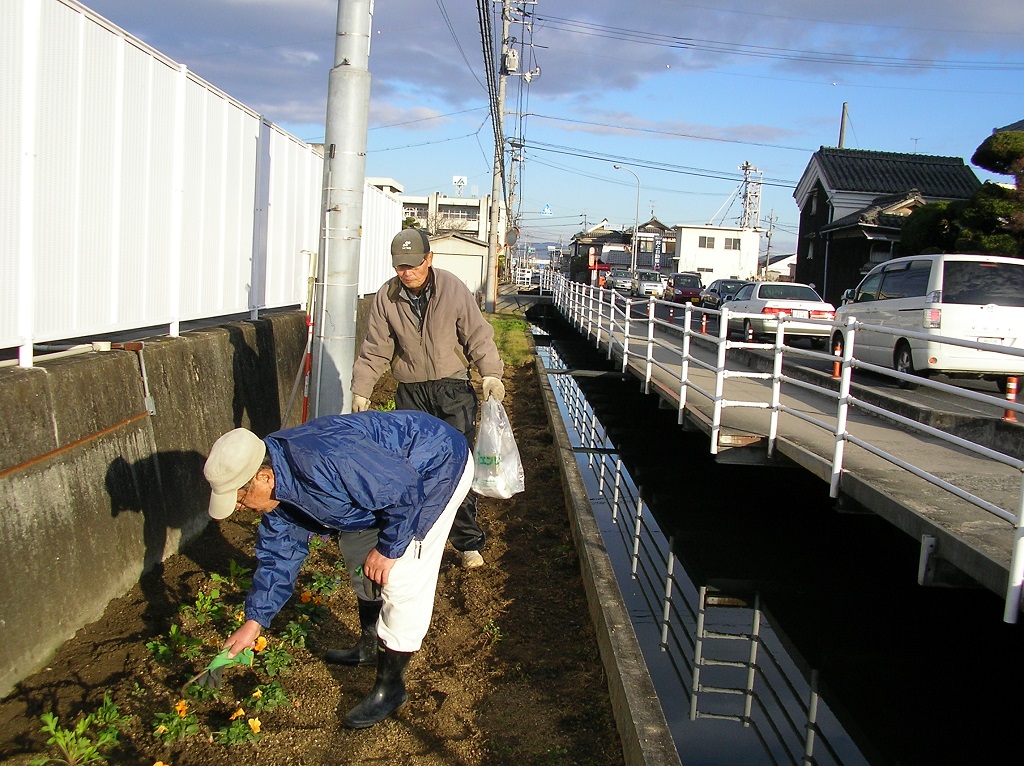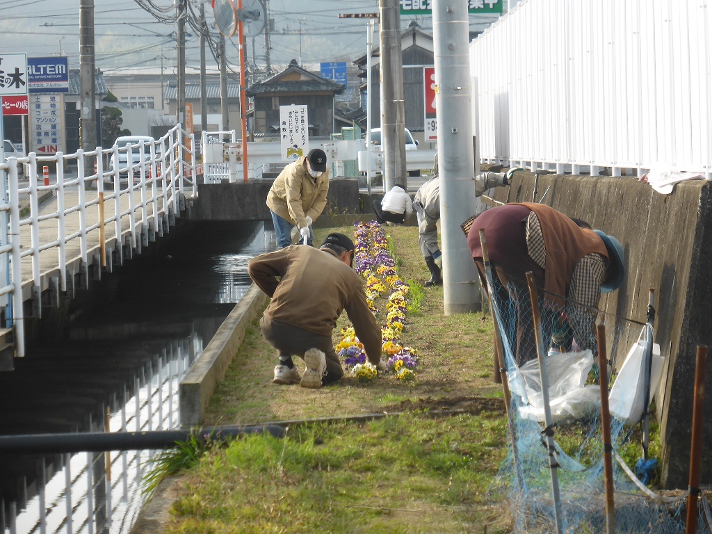 3月から復活したのふれあい花壇の草取り